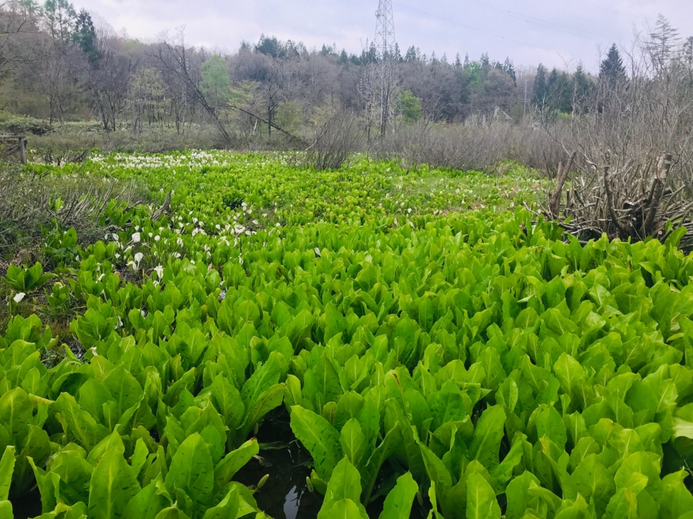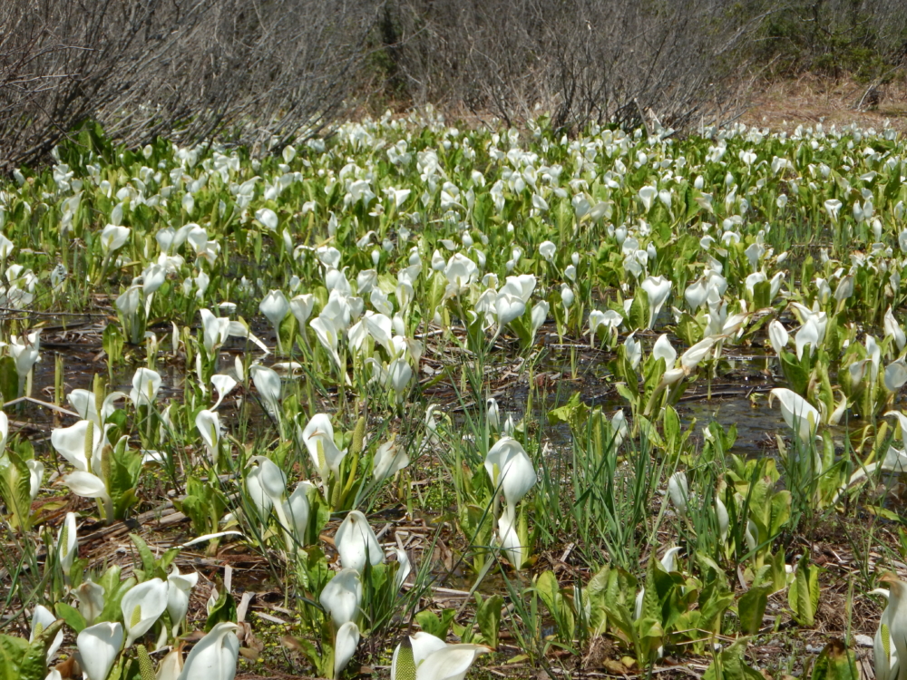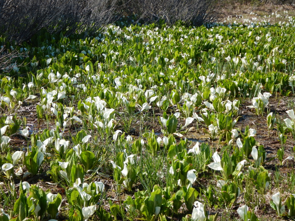 ■4/25 見ごろとなりました。一気に白いミズバショウが出てきました。見ごたえのある状態です。