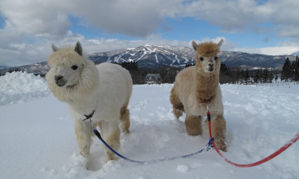 冬の牧歌の里も動物とのふれあいが人気!アルパカや馬、モルモットやウサギなどの小動物もかわいらしいです。雪遊びもスノーラフトやチュービングそりなど家族みんなで楽しめます。