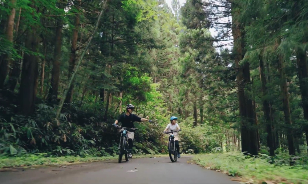 見た目はマウンテンバイクやクロスバイクのようなスタイリッシュさを保ち、ペダルと連動したアシスト機能が付いたE-BIKEで、ひるがの高原をめぐるガイド付きツアーです。1名~5名まで対応可