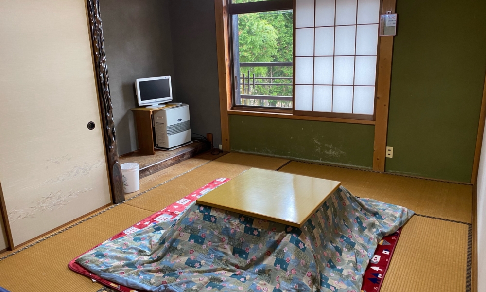 客室にはこたつが備え付けてありますのでゆったりくつろぐことができます。ダイナランド、高鷲スノーパークまで車で10分。素泊まりのみです。