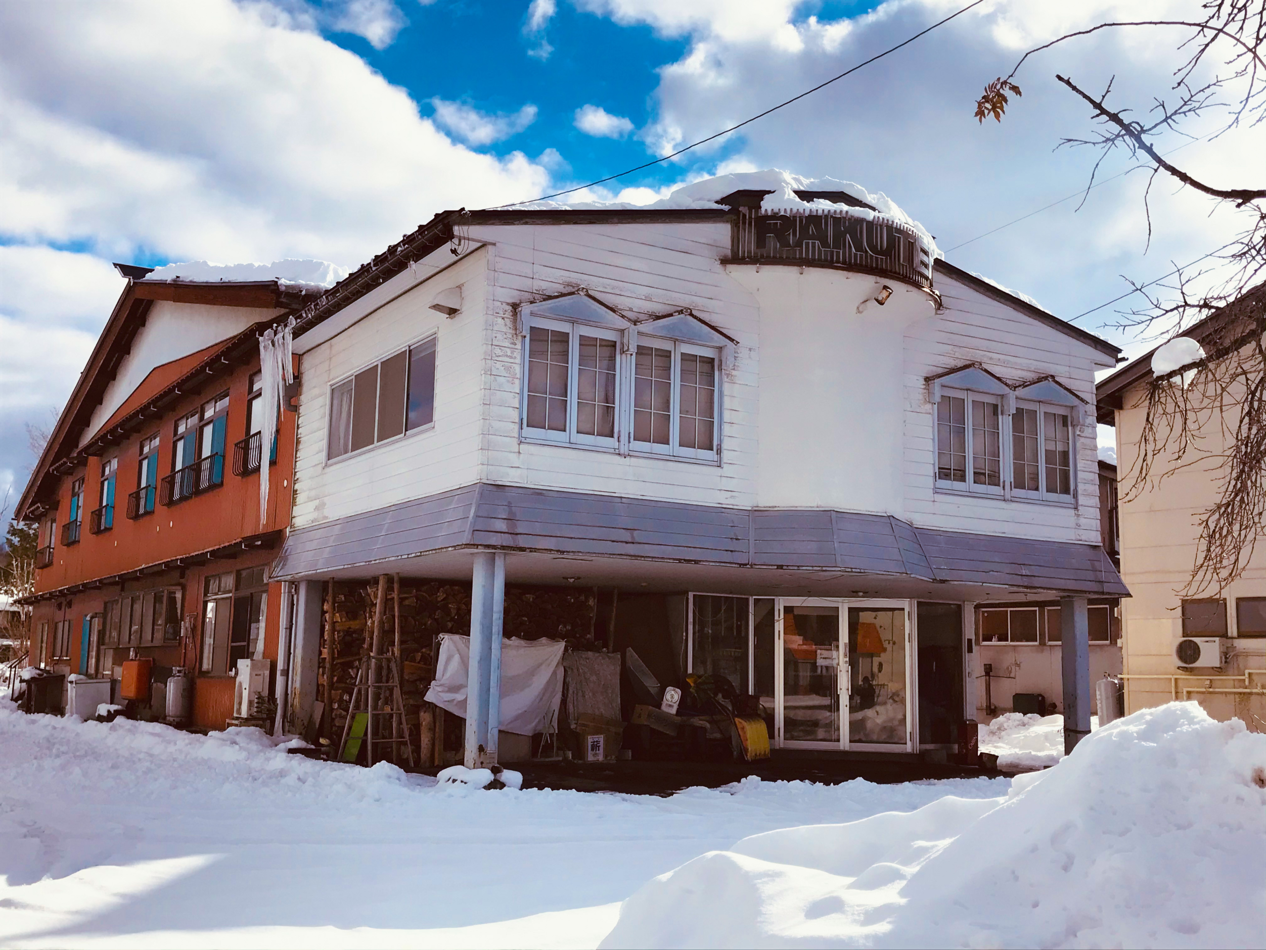 ひるがのの中心にある民宿楽天。隣には中華料理屋、歩いて2分で商店があります。