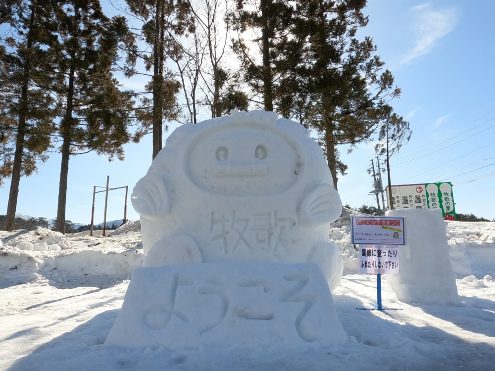 代わりに、郡上たかす雪まつりの会場を盛り上げていた3m四方の雪ブロックで作る雪像をTAKASUMOUNTAINS6スキー場と、牧歌の里、高鷲振興事務所、高鷲観光協会、そして道の駅大和の10か所に設置し、ご来場の皆様をお出迎え致します。巨大雪像と記念撮影をお楽しみください。