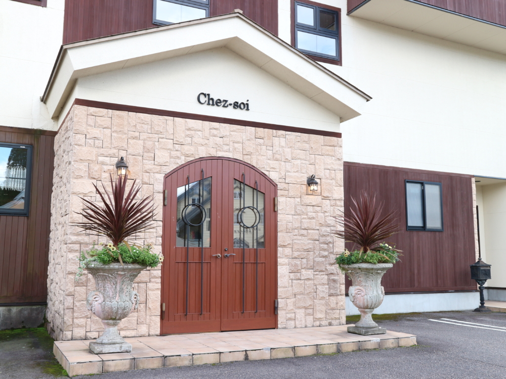 ひるがの高原スキー場から徒歩1分の場所にシェソワワカミヤはあります。正面の門や玄関など、高級感を感じる雰囲気は大人な旅を演出してくれます。