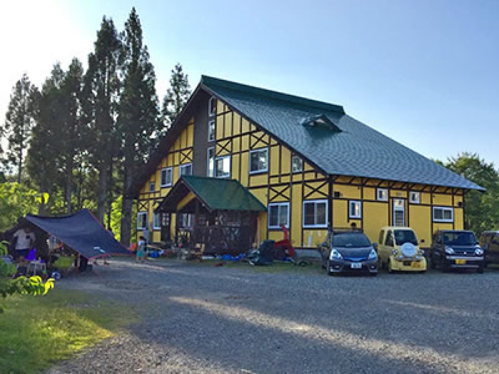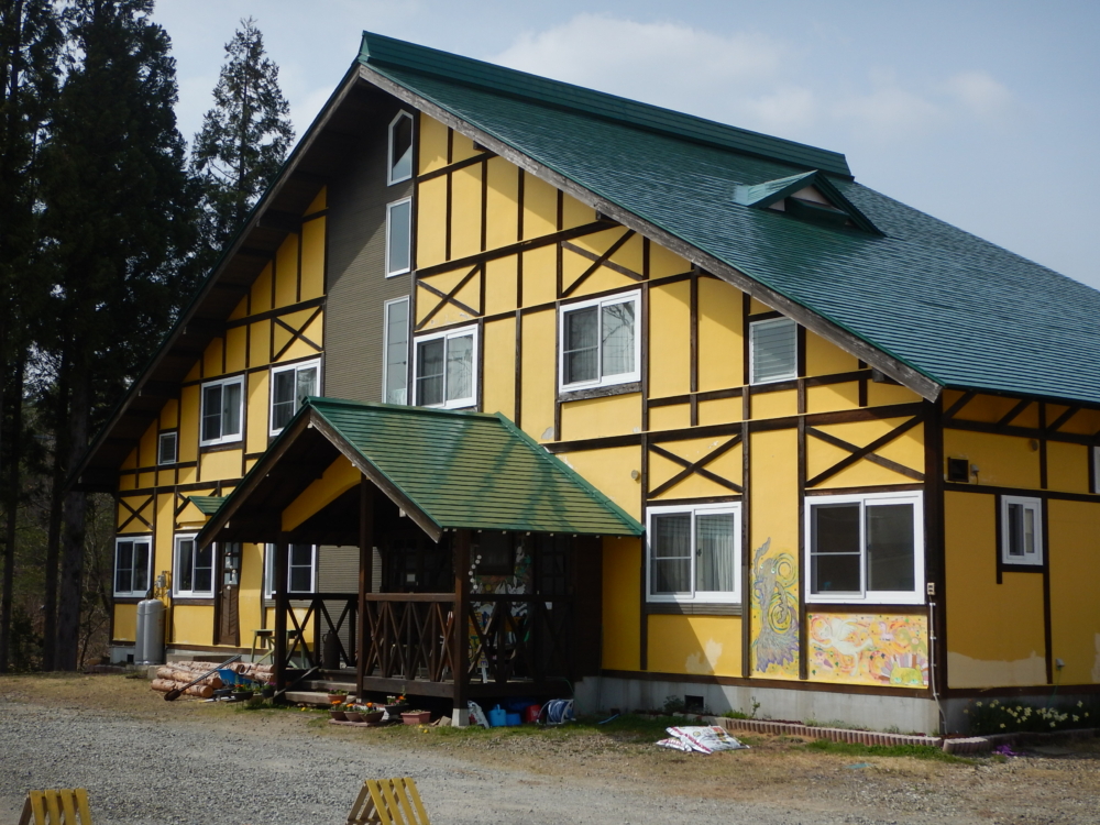 こちらはひるがの高原SAスマートICより約5分。高鷲スノーパークとひるがの高原スキー場が最寄となるゲストハウスキンザザです。スノーボード、郡上おどりが大好きなオーナーが移住してアーティスト開業したゲストハウスです。黄色い壁に緑の屋根が目印!