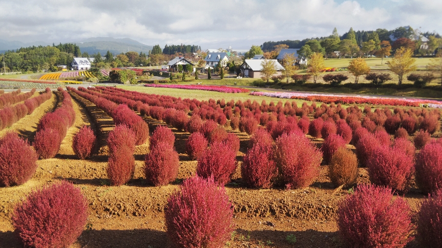 9月下旬から10月上旬までコキアの紅葉が見ごろ