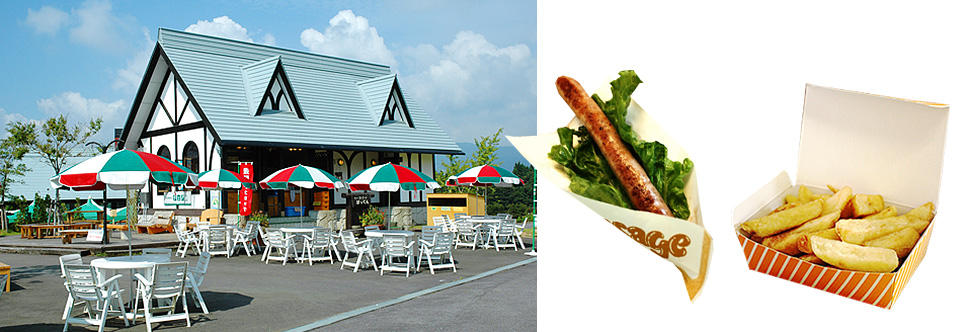 牧歌の里の園内でもランチを召し上がれます。メインハウスにはレストラン、階段を下りた先にはBBQハウス、広い園内の中にはファストフードやパン屋さんといった軽食もございます。