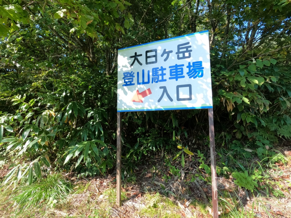 上部駐車場の入り口が大日ヶ岳への登山口となっています。たまに、先行者が使った木の杖などが立てかけてあります。今回も2本ありましたので使わせていただき、帰りにはプラス2本加えて返しておきました。