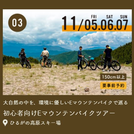 ひるがの高原スキー場はE-MTB・ノルディックウォーク【参加料無料】
