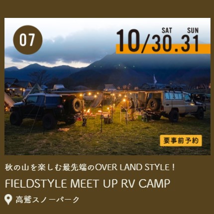 郡上初開催!のオーバーランドスタイルキャンプイベント。「オーバーランド」とは、車中泊や車上泊をしながら、相棒となる車で長距離の旅をするスタイルのこと。木々が色づき始めた爽快な秋の山で家族や仲間、そして自慢の車と過ごす時間をお楽しみください。