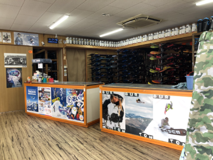スキー場内のレンタルショップ。センターハウス2階にレンタルコーナーがあります。1日、半日(AM/PM)と時間によっても選ぶことができ、ウェア、ゴーグル、グローブなどフルレンタルパックもご用意しております。ツアーバスなどで何も持たずにすべてをスキー場のセンターハウスで揃えることができるのでとっても便利ですね。